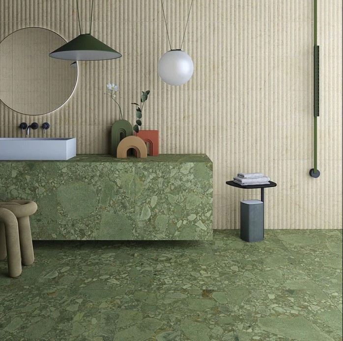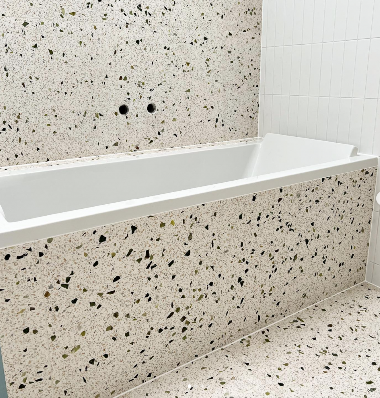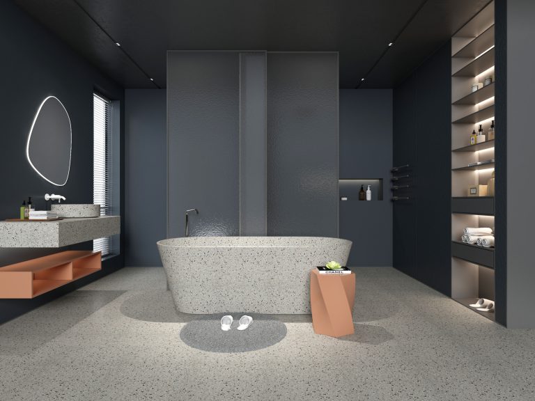 Ngày nay, phòng tắm không chỉ là nơi để thư giãn mà còn phản ánh gu thẩm mỹ và phong cách sống của gia chủ. Trong số các vật liệu hiện đại, bồn tắm terrazzo hay bồn tắm đá mài nổi bật nhờ khả năng biến hóa đa dạng về màu sắc và hoa văn. Từ tông màu tối giản tinh tế cho đến họa tiết sôi động rực rỡ, terrazzo mang đến cho mỗi khách hàng một lựa chọn “chuẩn phong cách riêng”.